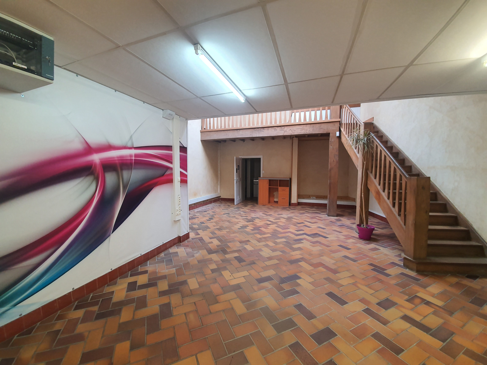 Local disponible de suite. Disposant d'environ 140m2 celui-ci dispose également d'une zone de stokage en mezzanine, un wc et pièce d'eau.