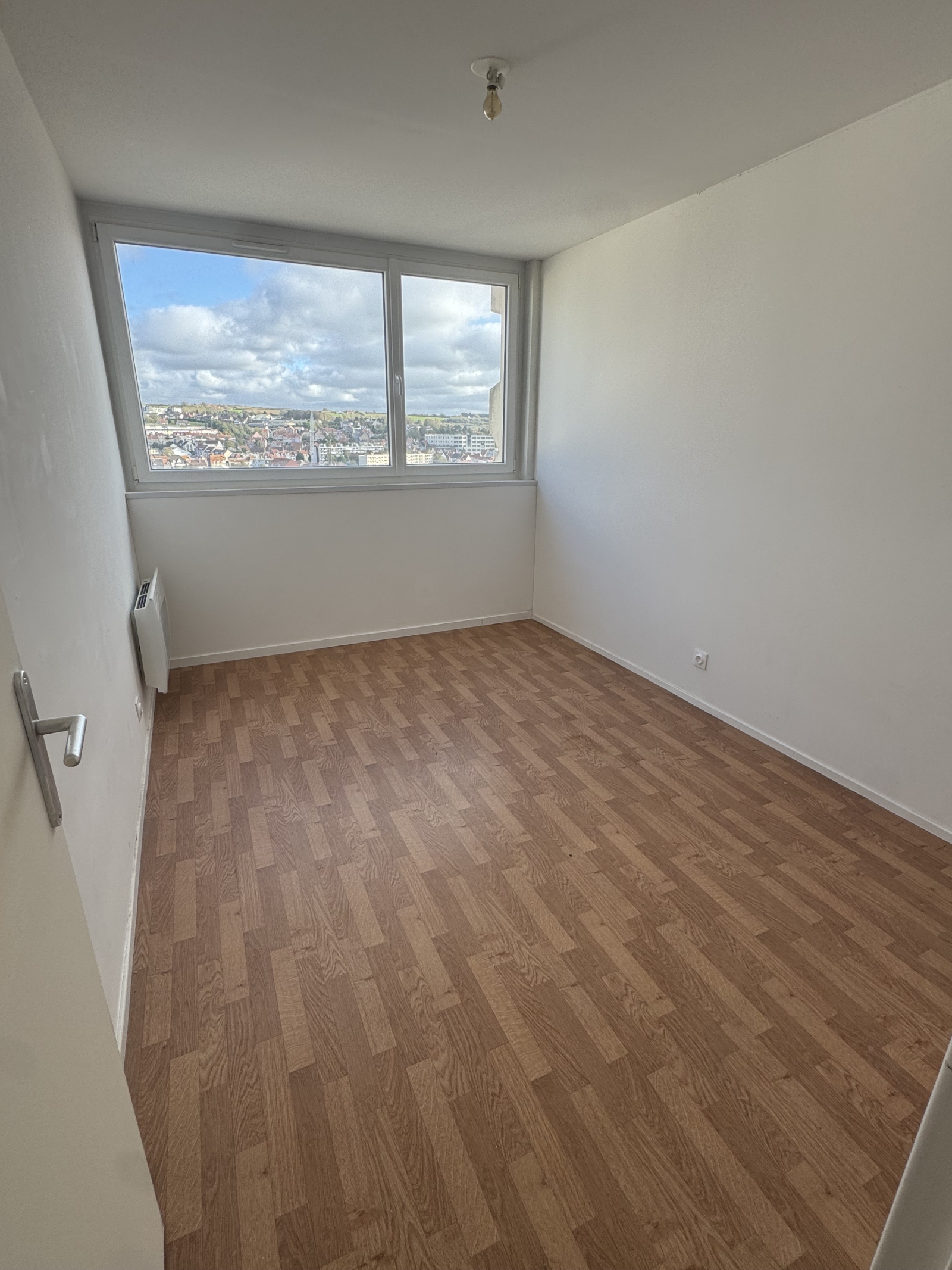 Bel appartement sur une vue dégagée au 14ème étage avec ascenceur proche de la gare comprenant :~~Un hall d'entrée, dégagement avec placards, une cuisine équipée ~(cuisinière,frigo)~~Un double salon/séjour, cellier, wc~~Trois chambres dont deux avec placards, une salle d'eau avec douche et une autre avec lavabo~Eau, electricité chauffage électrique~~~~Les charges comprennent avec régularisation annuelle : charges de copropriété et taxes ordures