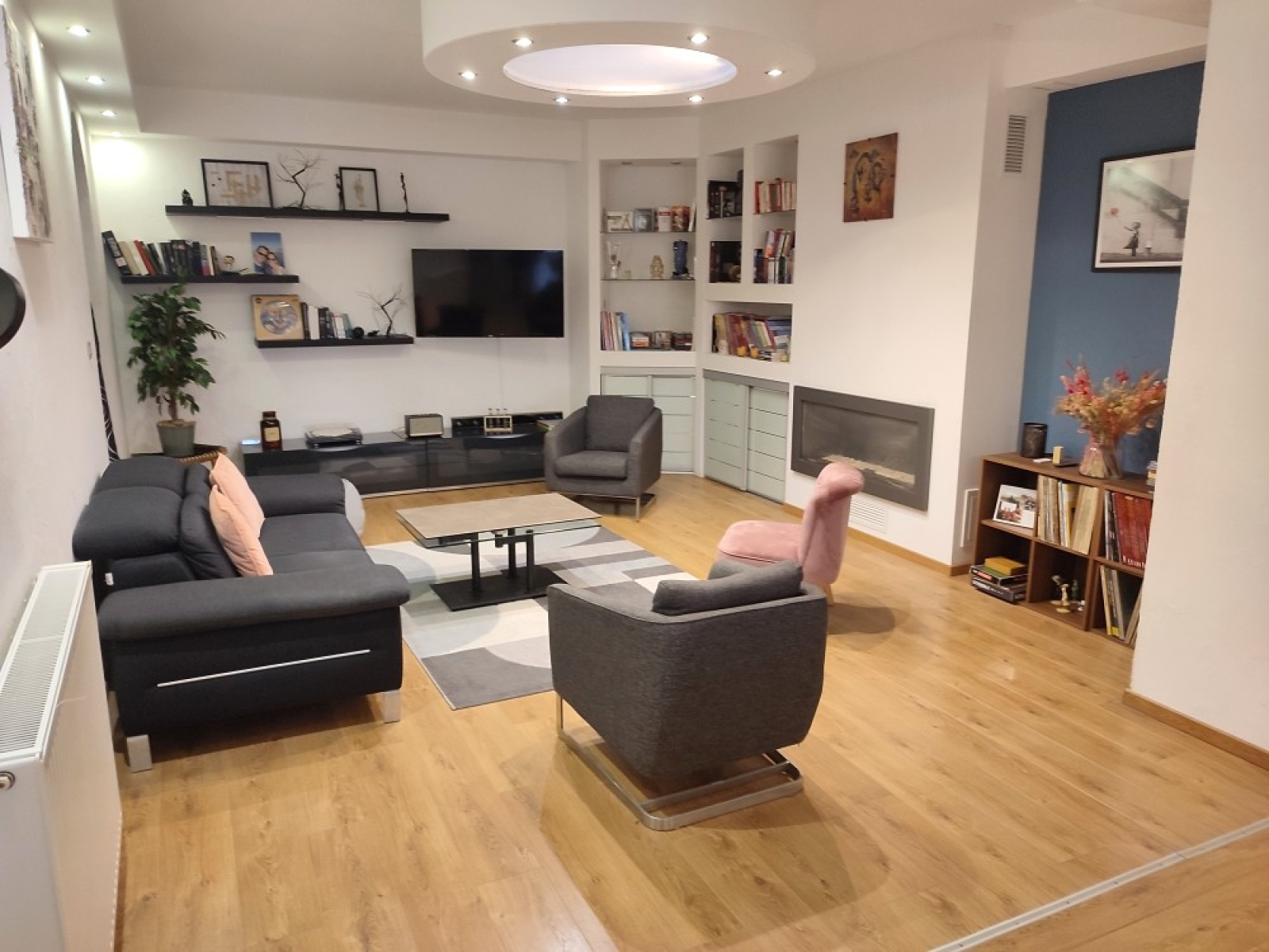 Un espace de vie spectaculaire de 80m² (salon avec cheminée au gaz de ville, séjour, cuisine), une cuisine aménagée et équipée de qualité, trois belles chambres, un bureau, un dressing, et une salle de bains raffinée (double vasques, douche et baignoire).